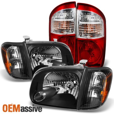 Fits 05 Toyota Tundra Double | Crew Cab Black Headlights + Red Tail Lights Pair