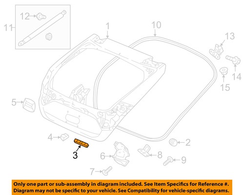The part or sub-assembly you are buying may be referenced on a diagram above. The diagram above is a Genuine Factory image from the vehicle manufacturer showing the entire assembly surrounding the part or sub-assembly you are purchasing. ONLY the single part or sub-assembly specified in the callout "Part Ref# on Diagram" is being sold to you. Parts are shown individually with their own Ref #, while sub-assemblies may show multiple parts within a square or circle in the diagram with its own corresponding Ref #. You can find the part or sub-assembly being sold by locating the correct Part Reference # on the diagram. Note: Sometimes the same Reference number can appear multiple times on one diagram. Typically only ONE part from ONE of the callouts will be included. See the Compatibility table "Notes" section for details about the part you are buying. If you have questions, please contact us before buying to avoid confusion.