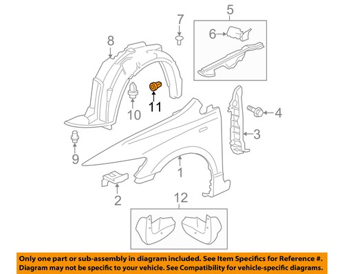 The part or sub-assembly you are buying may be referenced on a diagram above. The diagram above is a Genuine Factory image from the vehicle manufacturer showing the entire assembly surrounding the part or sub-assembly you are purchasing. ONLY the single part or sub-assembly specified in the callout "Part Ref# on Diagram" is being sold to you. Parts are shown individually with their own Ref #, while sub-assemblies may show multiple parts within a square or circle in the diagram with its own corresponding Ref #. You can find the part or sub-assembly being sold by locating the correct Part Reference # on the diagram.