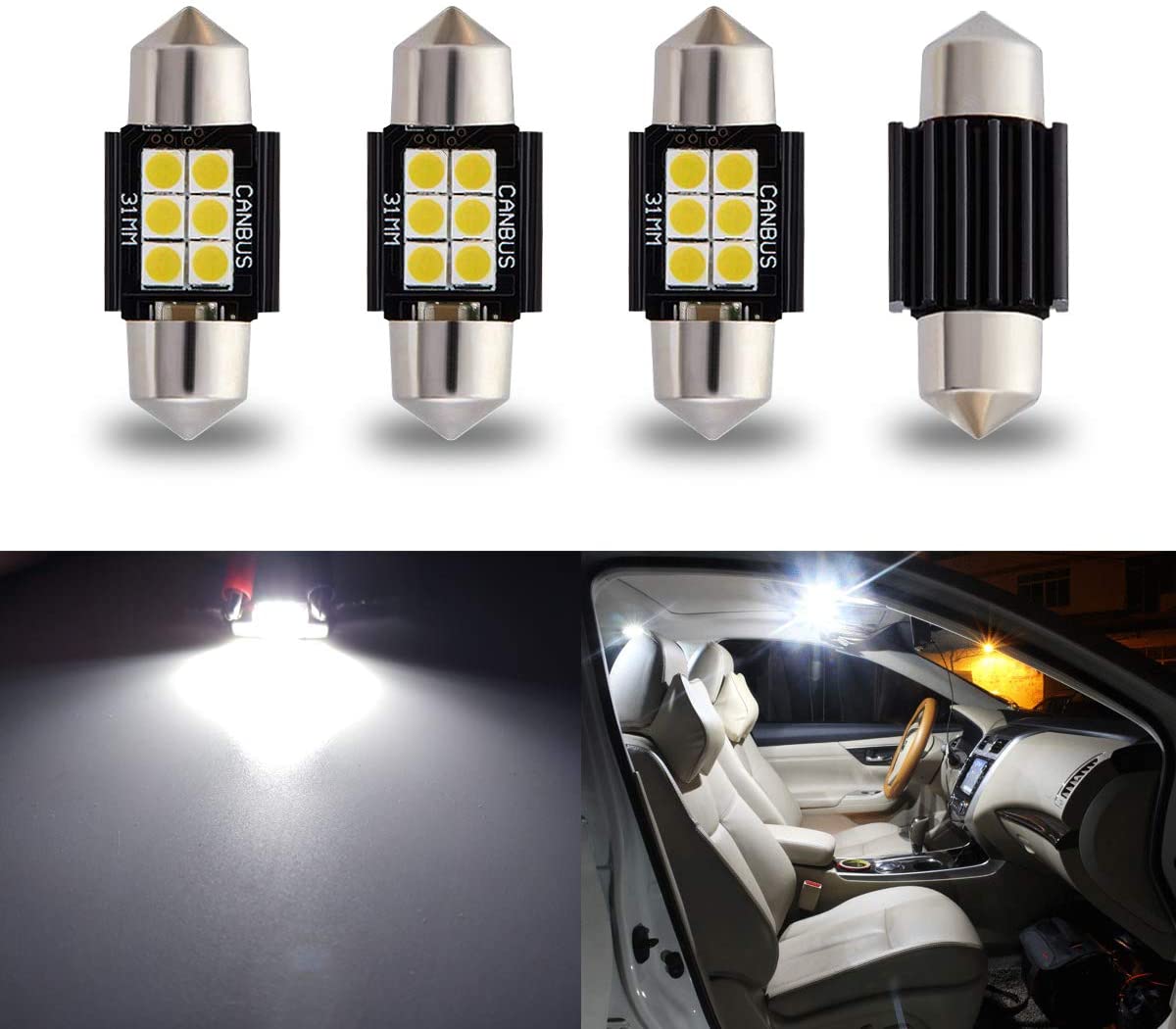Size: 31mm  |  Color: White Easy installation, plug and play. Best value in the market! Features High Brightness LED: 6 SMD 3030 high Brightness chips. Working Voltage: fit...