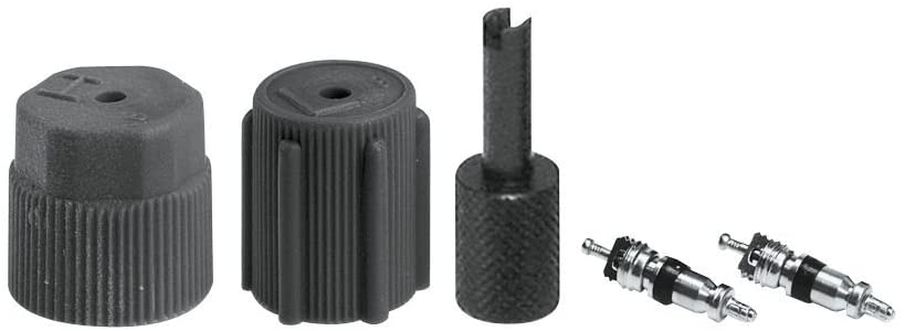 The Automotive A/C R-134a High and Low Side Service Port Repair Kit helps stop refrigerant leaks and fits most air conditioners. Professional grade service valve leak repair kit is for tightening valve cores that become loose and allow refrigerant to leak out. Comes with replacement low- and high-side valve caps with O rings, valve cores, and a valve core tool for removal and installation.