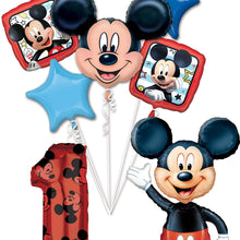 - (1) 34" Giant Red Mickey Mouse Forever Number 1 Foil Balloon, (1) 52" Huge Mickey Mouse Airwalker Foil Balloon, (1) 28" Mickey Mouse Mouse Head Balloon, (2) 18" Mickey Mouse Clubhouse Foil Balloons, (1) 18" Birthday Present Balloon, (2) 19" Foil Star Balloons 1- Blue and 1- Light Blue.