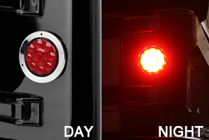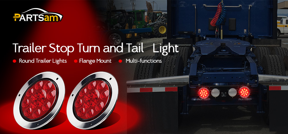 Partsam 2PCS 12 LED Red 12V 4" Round Stop Turn Brake Tail Lights w/Chrome Bezel, 4 inch round led trailer lights, 4 inch round led trailer brake light, 4 inch round led tail lights Flange Mount