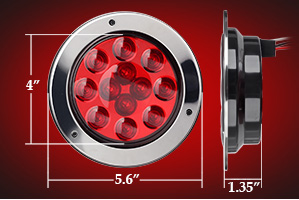 • 4" Round LED Trailer Stop, Turn, Tail Light; Flange Mount - Red; 12 Creed LEDs