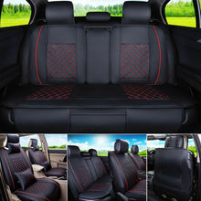 PU Leather Car Seat Cover Mat Rear+Front Black W/ Red Size L for 5 Seats Auto