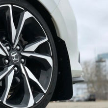 SET of (4 PIECES) BRAND NEW RALLY ARMOR MUD FLAPS FOR 2016-2020 Honda Civic Si and Civic Sedan and Coupe Fitment : Manufacturer Part Number: MF50-UR-BLK/BL Each set include 4 flaps, accompanying hardware and instructions. MADE IN USA Tenth and previous gen Honda Civic owners have this in common; their odometers are likely to smack of some prodigious miles at some point in the age of their vehicles. When reliable cars meet drivers with purposeful lives with places to go and miserably muddy slap-happy roads, said drivers deluging us with messages and emails urging us to manufacture easy-fitting flaps, stat. Rally Armor 10th gen Civic, Civic Si mud flaps have finally landed and in the best of ways. These flaps were designed with Civic owners in mind. Focused on protecting your daily drivers, Rally Armor super flexible, uber protection polyurethane mud flaps are 100% drill-free, Civic, Si specific kits that include a complete set of 4 flaps that mate uniquely to our hardware and custom, stainless steel brackets. We include easy to follow installation instructions with our first in class, quality-focused mud flaps. Our polyurethane is formulated to outlast tough temps, to ward off all sorts of ugly, damaging dirt, stones, basically all the manure the road will throw up your Civic side panels. They're right at home in all conditions, comfortable as a polar bear hanging loose in arctic waters, an emperor penguin two-stepping its way across Antarctica, cozy like a camel loafing it up in a desert, we digress... . Weathering dirt roads, steep driveway inclines or grinding through heavy snow, Rally Armor UR mud flaps are THE seasoned vets that lower priced, alternative plastics/rubber/vinyl flap newbs try but simply don't compete with. Out of pure consideration for your faithful odometer, don’t waste your miles or money on cheap wannabe equivalents. Rally Armor is known for setting THE standard in mud flaps. Never any drilling, always custom fit, using stainless and plastic retainers to resist galling and rusting, Rally Armor has the ultimate, long-term protection plan for your Honda Civic.