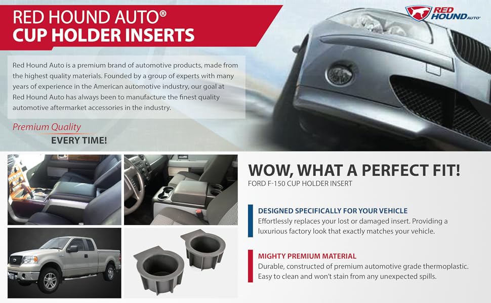 Product Description Red Hound Auto Premium Center Console Cup Holder Inserts Built tough, these premium, rugged, quality Red Hound Auto Center Console Cup Holder Inserts are factory tested...
