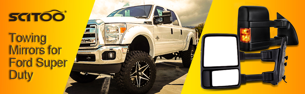SCITOO Towing Mirrors fit for Ford Exterior Accessories Mirrors fit 2003-2007 for Ford F250 F350 F450 F550 Super Duty with Amber Turn Signal Heated Manual Controlling Telescoping and Folding Features