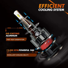 • Advanced luminous output--80W, 8000LM per pair, 300% brighter as halogen lamps Unique 360-degree design--Provide perfect beam pattern, cut off line design, super focused and max light output provides a wider and farther lighting area Plug-and-play design--1:1 mini design as halogen, 10 minutes installation Intelligent drive--Work with 99% of vehicles without computer system error problems Powerful turbo fan--12,000RPM ultra-low noise turbo fan provides effective cooling and greatly extends the lifespan of the bulb Superior Durability--Over 50000 hours lifespan 6000K Xenon White-Daylight optics provide better visibility for safer driving