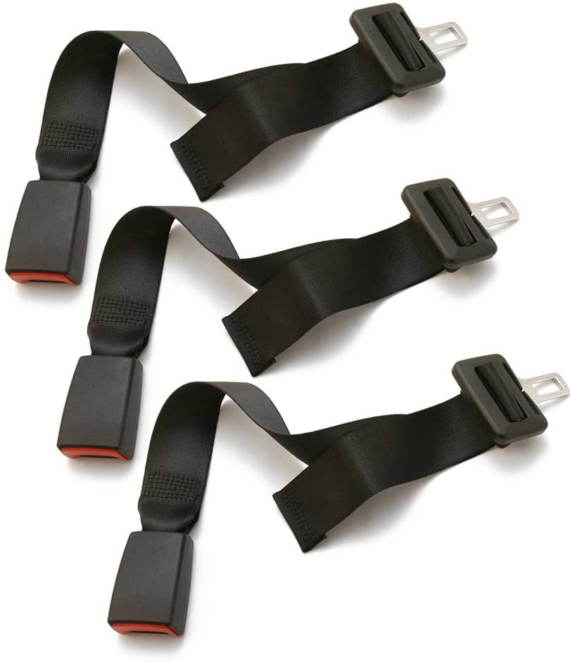 Seat Belt Extender Pros E4 Safe Certified Adjustable 9-26 Inch Seat Belt Extender 3-Pack (7/8 Inch Metal Tongue, Type A) Drive Safely and Buckle Again (Black)