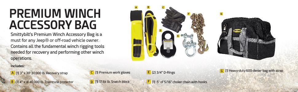 From the manufacturer Smittybilt (76807) XRC Gen 2 Front Bumper Smittybilt's Premium Winch Accessory Bag is a must for any Jeep or off-road vehicle owner. Contains all the...