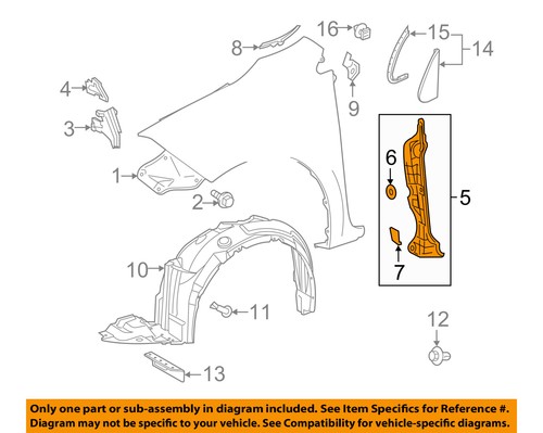 The part or sub-assembly you are buying may be referenced on a diagram above. The diagram above is a Genuine Factory image from the vehicle manufacturer showing the entire assembly surrounding the part or sub-assembly you are purchasing. ONLY the single part or sub-assembly specified in the callout "Part Ref# on Diagram" is being sold to you. Parts are shown individually with their own Ref #, while sub-assemblies may show multiple parts within a square or circle in the diagram with its own corresponding Ref #. You can find the part or sub-assembly being sold by locating the correct Part Reference # on the diagram. Note: Sometimes the same Reference number can appear multiple times on one diagram. Typically only ONE part from ONE of the callouts will be included. See the Compatibility table "Notes" section for details about the part you are buying. If you have questions, please contact us before buying to avoid confusion. ![]()