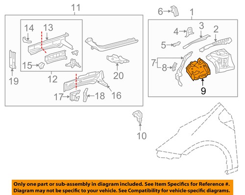 The part or sub-assembly you are buying may be referenced on a diagram above. The diagram above is a Genuine Factory image from the vehicle manufacturer showing the entire assembly surrounding the part or sub-assembly you are purchasing. ONLY the single part or sub-assembly specified in the callout "Part Ref# on Diagram" is being sold to you. Parts are shown individually with their own Ref #, while sub-assemblies may show multiple parts within a square or circle in the diagram with its own corresponding Ref #. You can find the part or sub-assembly being sold by locating the correct Part Reference # on the diagram.