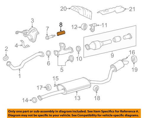 The part or sub-assembly you are buying may be referenced on a diagram above. The diagram above is a Genuine Factory image from the vehicle manufacturer showing the entire assembly surrounding the part or sub-assembly you are purchasing. ONLY the single part or sub-assembly specified in the callout "Part Ref# on Diagram" is being sold to you. Parts are shown individually with their own Ref #, while sub-assemblies may show multiple parts within a square or circle in the diagram with its own corresponding Ref #. You can find the part or sub-assembly being sold by locating the correct Part Reference # on the diagram. Note: Sometimes the same Reference number can appear multiple times on one diagram. Typically only ONE part from ONE of the callouts will be included. See the Compatibility table "Notes" section for details about the part you are buying. If you have questions, please contact us before buying to avoid confusion. ![]()