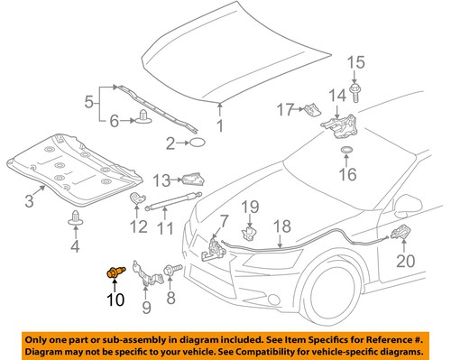 The part or sub-assembly you are buying may be referenced on a diagram above. The diagram above is a Genuine Factory image from the vehicle manufacturer showing the entire assembly surrounding the part or sub-assembly you are purchasing. ONLY the single part or sub-assembly specified in the callout "Part Ref# on Diagram" is being sold to you. Parts are shown individually with their own Ref #, while sub-assemblies may show multiple parts within a square or circle in the diagram with its own corresponding Ref #. You can find the part or sub-assembly being sold by locating the correct Part Reference # on the diagram. Note: Sometimes the same Reference number can appear multiple times on one diagram. Typically only ONE part from ONE of the callouts will be included. See the Compatibility table "Notes" section for details about the part you are buying. If you have questions, please contact us before buying to avoid confusion. ![]()