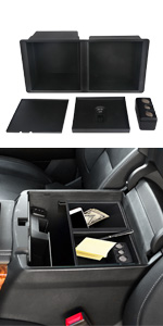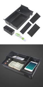 VANJING center console organizer is designed to two-tiered storage compartments which make better use of the space of the front center console storage bin. What is more, some large items can be stored below the center console tray such as CDs, DVDs, cell phones, wallet, cigarette, keys etc.