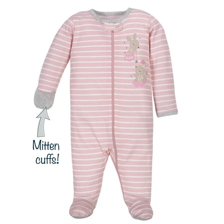 Wonder Nation Baby Girl Pajamas Zip-up Sleep 'N Play Sleepers, 4-Pack